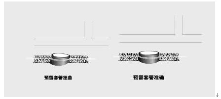 混凝土梁、墻、板上預留套管及鐵件位置不準確,不利管道穿行和支架安裝。應事先計算好位置,在扎鋼筋時將套管和鐵件點焊在鋼筋主筋上,套管內(nèi)塞上廢紙或黃土,防止水泥流入;到灌混凝土時要有專人監(jiān)護,以防套管移動。樓板穿套管的上口應高出地板面30-50mm,保證樓地板飾面后的地面水不流入套管。
